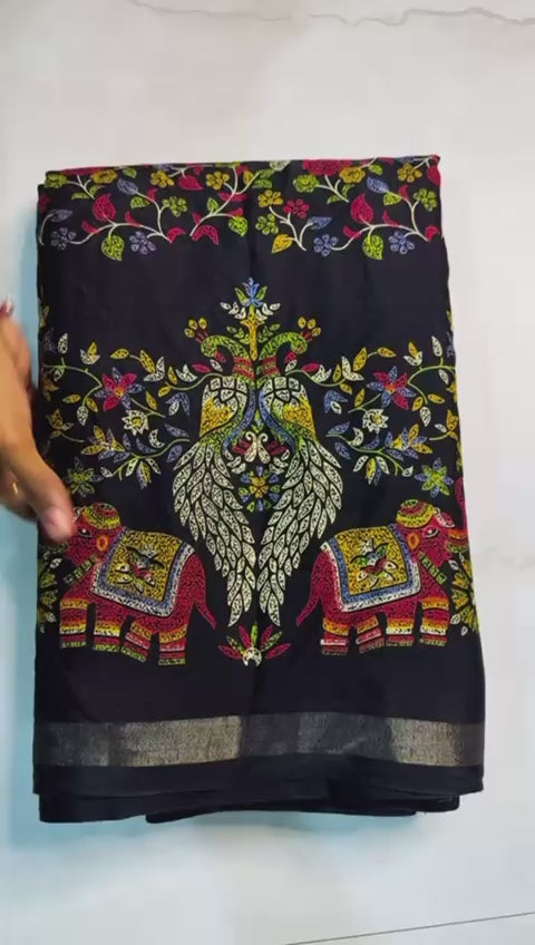*Soft mul mul cotton silk sarees with pen* *kalamkari design*